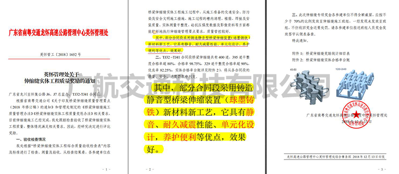 廣航交通擁有20年橋梁伸縮縫生產與安裝施工經驗,產品包含靜音伸縮縫、模數式和梳齒板伸縮縫,以及快干水泥和伸縮縫止水膠,項目遍布全國,有意請咨詢:13318810966